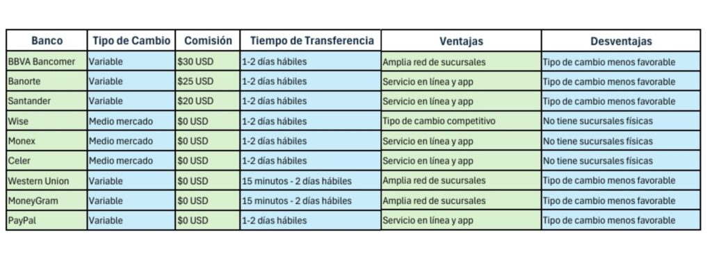 Los bancos nacionales como BBVA Bancomer, Banorte, Santander y HSBC ofrecen servicios de transferencias internacionales, pero suelen tener comisiones más altas y tipos de cambio menos favorables.