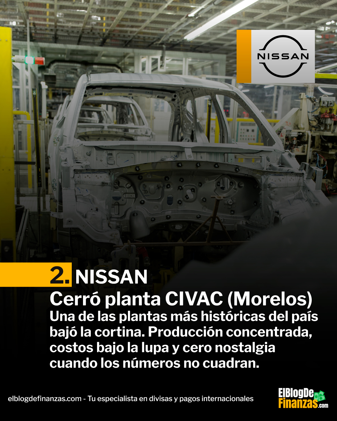 La histórica planta CIVAC de Nissan en Morelos —una de las más emblemáticas del país— cerró definitivamente tras años de baja producción y reconfiguración global de la armadora, concentrando operaciones en Aguascalientes.