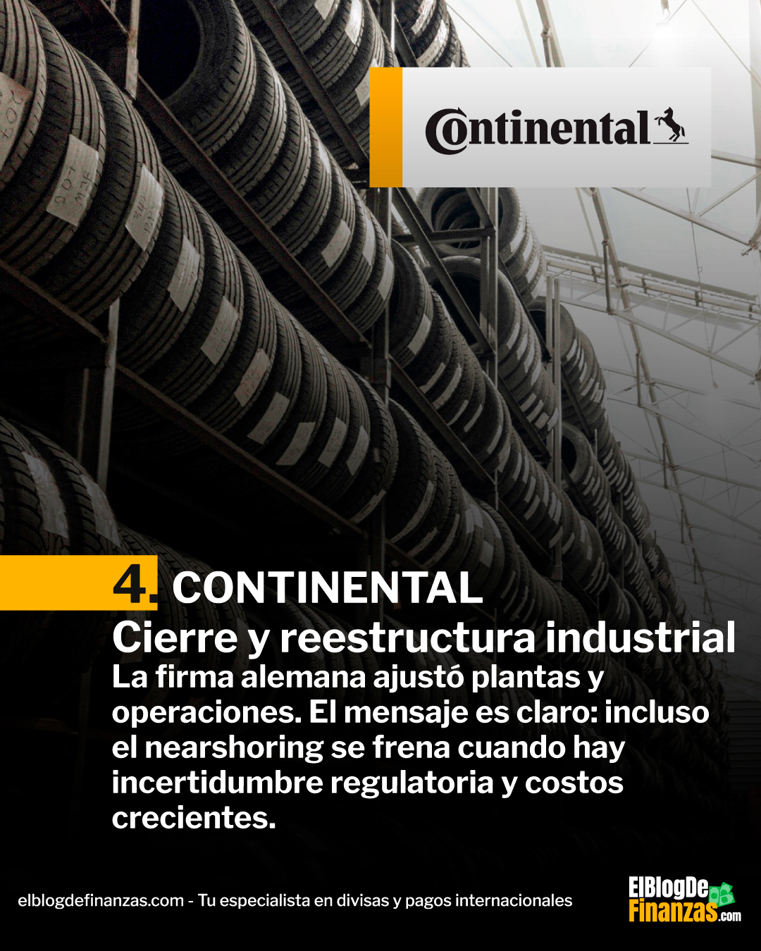 Continental anunció procesos de reestructura y consolidación de operaciones, cerrando o reduciendo algunas plantas para concentrar producción y mejorar rentabilidad en un contexto global más competitivo.