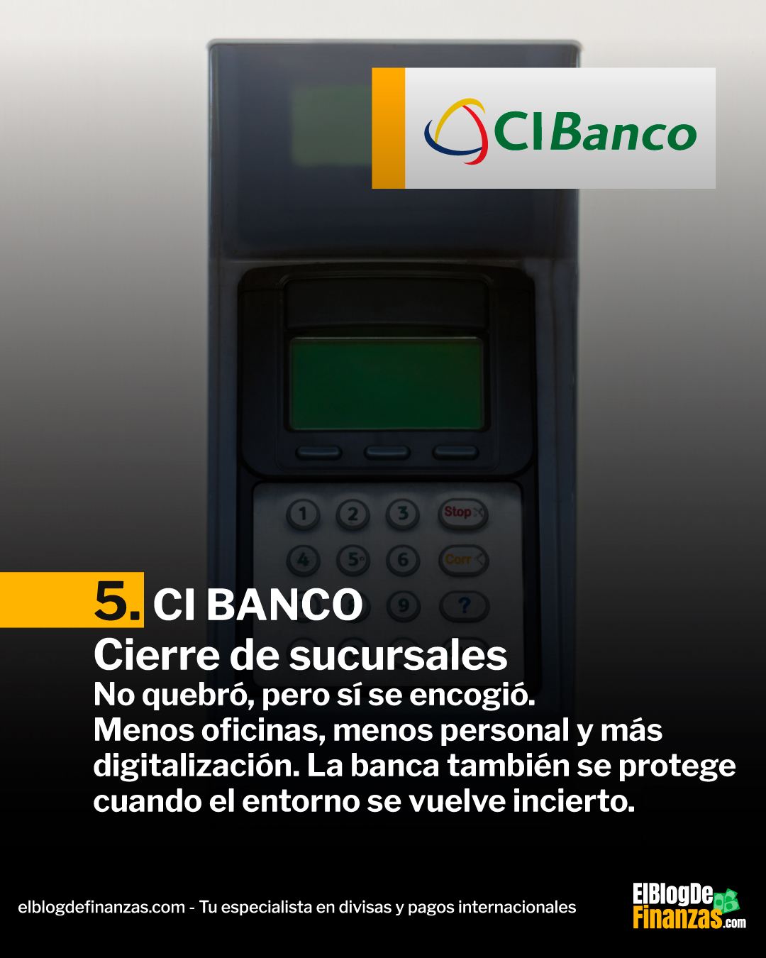 CI Banco anunció el cierre y consolidación de varias sucursales físicas, como parte de una estrategia de reducción de costos, digitalización y ajuste ante un entorno financiero más exigente en capital y regulación.